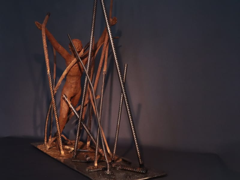 S’approprier l’obstacle pour faire de l’embûche une expérience. Céramique et métal – 2020 – 67 x 32 x 67 cm